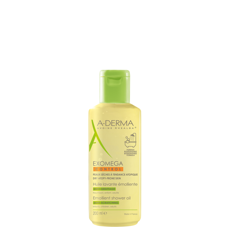 Exomega Control Shower oil on ravitseva ja hoitava puhdistusöljy, joka puhdistaa hellävaraisesti, pehmentää ja rauhoittaa kuivaihoisten ja atooppisten vauvojen, lasten ja aikuisten ihoa.