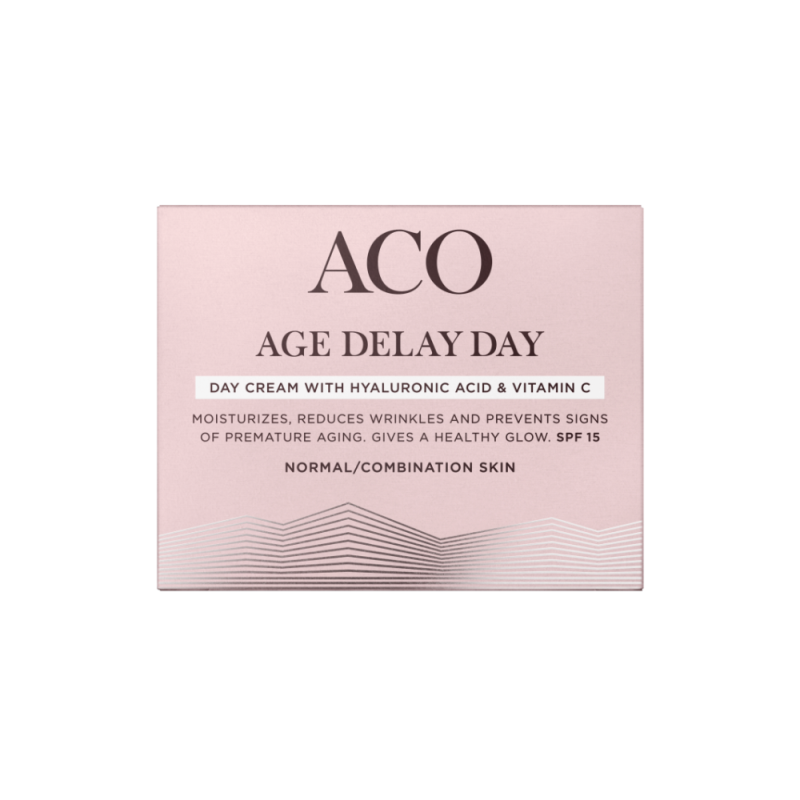 ACO AGE DELAY DAY on kevyt ja tehokas anti-age päivävoide normaalille/sekaiholle. Ehkäisee ihon ennenaikaista ikääntymistä ja vähentää näkyvästi ryppyjä. Suojaa ihoa UV-säteilyltä ja vapailta radikaaleilta. Tekee ihosta sileän ja antaa sille luonnollisen hehkun. Sopii normaalille/sek aiholle. Hellävarainen iholle. Miedosti hajustettu. Dermatologisesti testattu.