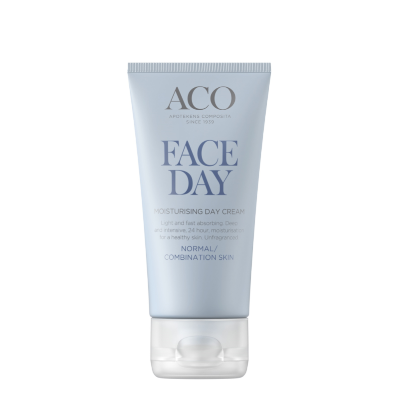 Kevyt päivävoide herkälle, normaalille ja sekaiholle. Raikas ACO Moisturizing Day Cream päivävoide kosteuttaa pitkäkestoisesti ja tehokkaasti sekä vähentää kiiltoa, jättäen kasvoille raikkaan sileän mattapinnan. Nopeasti imeytyvä kevyt voide pehmentää ihoa ja on ihanteellinen meikin alle. Hajusteeton.