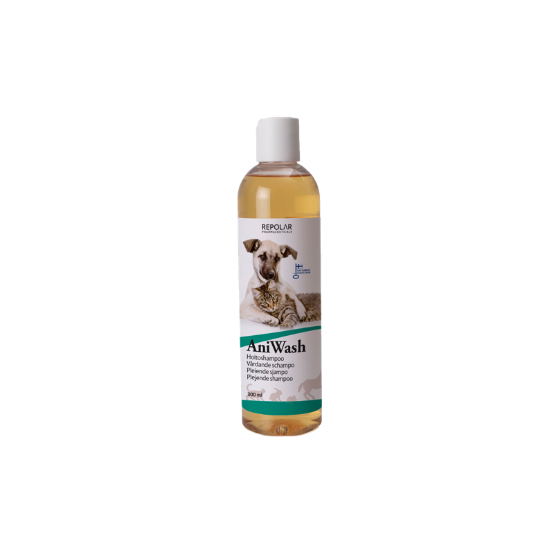 Antiseptinen AniWash Hoitoshampoo rauhoittaa eläinten iho-ongelmia mm. hilseilyä, punoitusta, kutinaa ja ärsytystä. Hellävarainen AniWash hoitoshampoo ei kirvele rupisella, märkivällä tai rikkinäiselläkään iholla. Shampoo pesee eläimen tehokkaasti, kuitenkaan kuivattamatta ihoa. AniWash tasapainottaa ihon kosteustasapainoa, aikaansaaden kauniin ja kiiltävän karvan. Hoitoshampoo sopii loistavasti myös eläinten peruspesuihin.