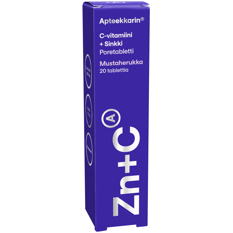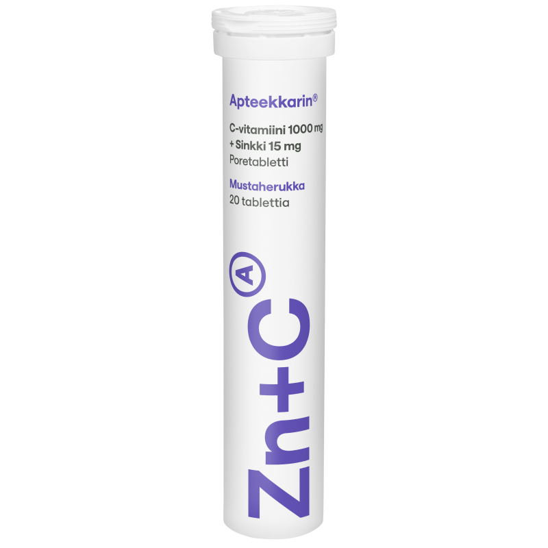 Apteekkarin C+sinkki-poretabletit sisältävät runsaasti C-vitamiinia, joka auttaa vähentämään väsymystä ja uupumusta. Sinkki edistää immuunijärjestelmän normaalia toimintaa. Herkullinen mustaherukan maku. Sopii myös vegaaneille.