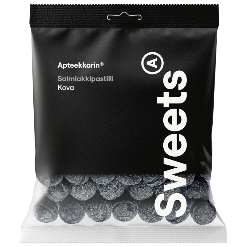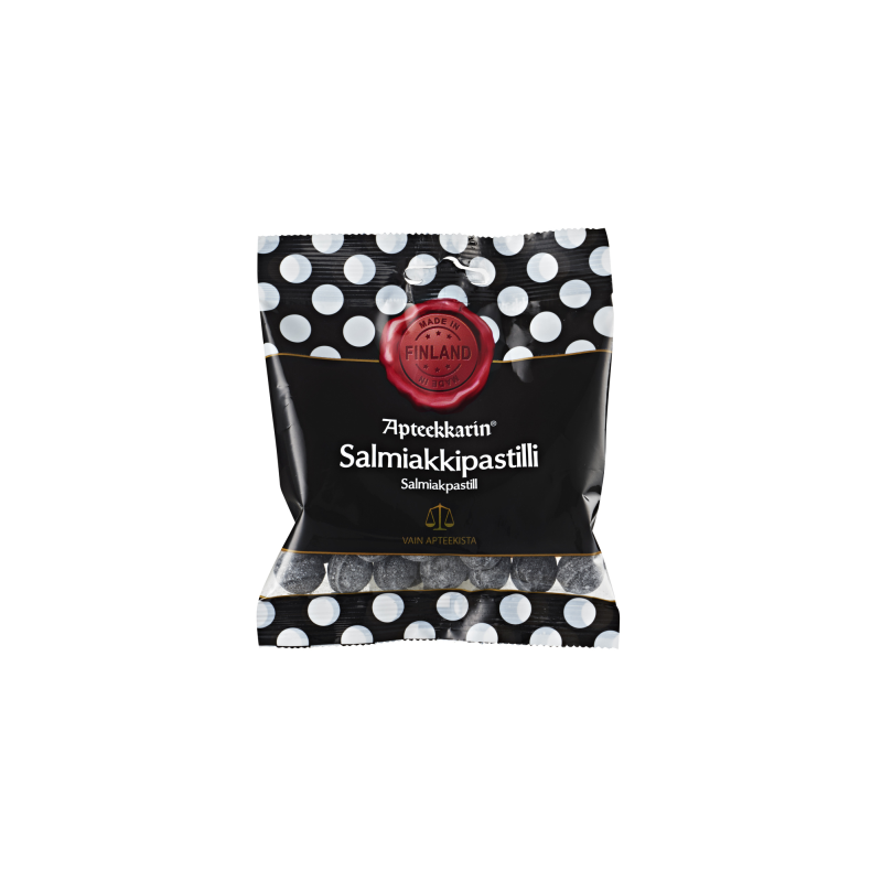 Apteekkarin Salmiakkipastillit ovat imeskeltäviä ja rohkeasti salmiakin makuisia pastilleja.