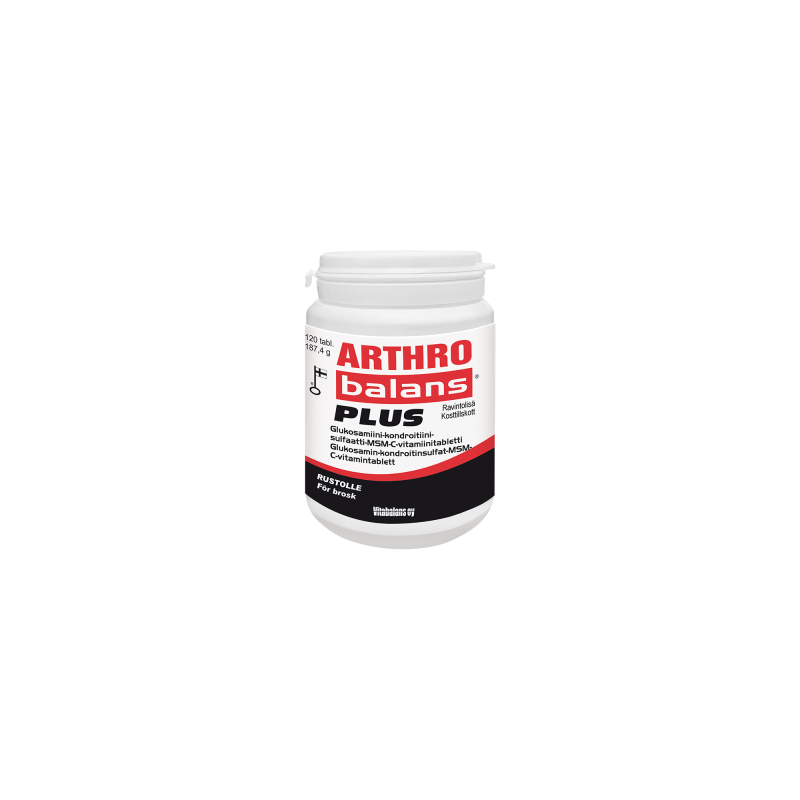 Arthrobalans Plus -tablettien koostumus on suunniteltu tukemaan nivelruston toimintaa ja nivelten hyvinvointia. Valmiste sisältää tarkkoina pitoisuuksina neljää turvallista aktiiviainetta: glukosamiinia, kondroitiinisulfaattia, MSM-rikkiyhdistettä sekä C-vitamiinia.