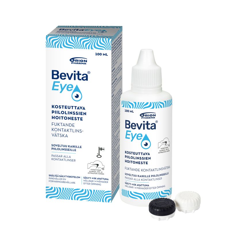 Bevita Eye Kosteuttava Piilolinssien Hoitoneste on kehitetty kaikkien piilolinssien ja erityisesti silikonihydrogeelilinssien puhdistukseen, desinfiointiin, säilytykseen, huuhteluun ja kostutukseen.