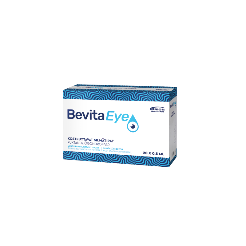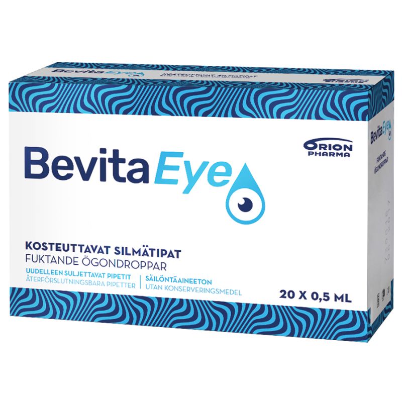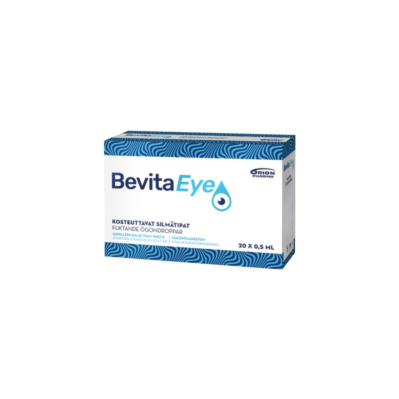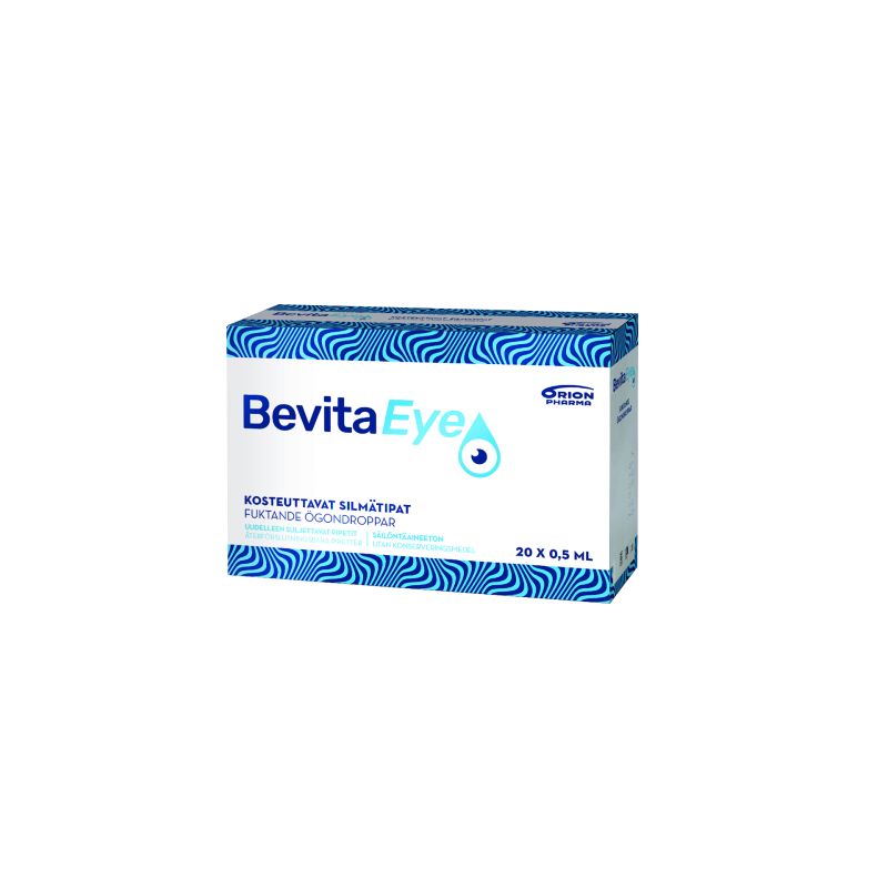 Bevita Eye silmätipat lievittävät ympäristötekijöistä, silmiin kohdistuvista stressitekijöistä tai mekaanisista syistä johtuvaa kuivuutta, polttavaa tunnetta tai roskan tuntua. Oireita helpottava vaikutus on pitkäkestoinen. Bevita Eye silmätipat ovat säilöntäaineettomia ja ne soveltuvat käytettäväksi piilolinssien kanssa.