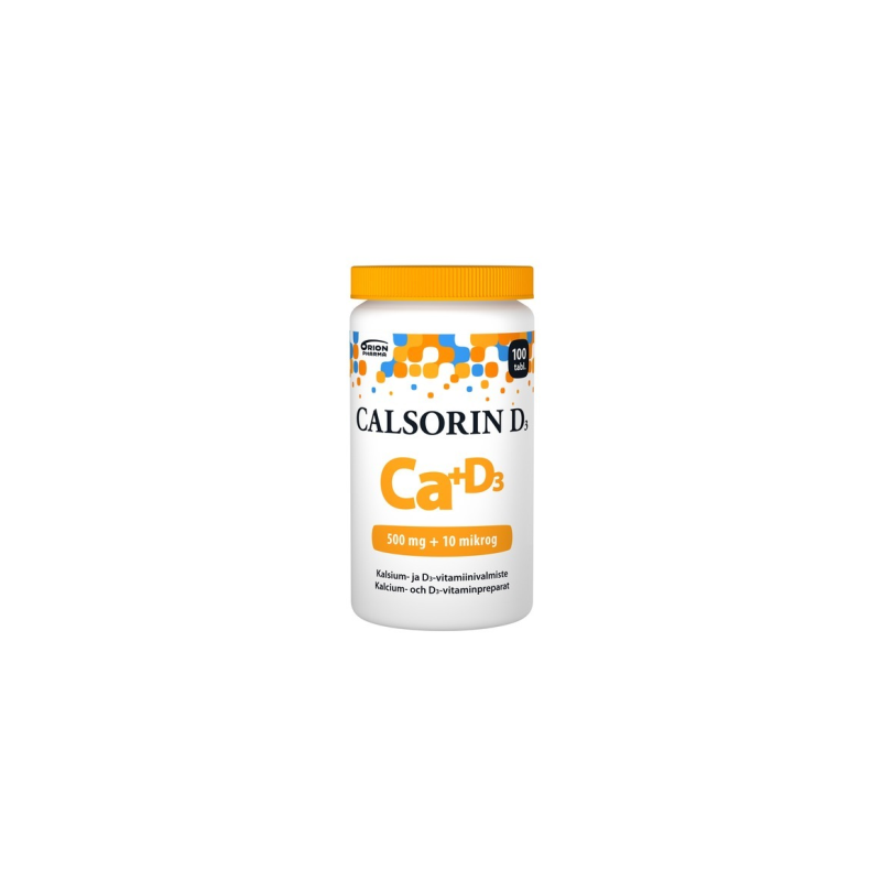 Calsorin D3 on helposti nieltävä kalsium ja D3-vitamiinitabletti. Kapselinmuotoinen, tarvittaessa puolitettava tabletti sisältää 500mg kalsiumia ja 10 mikrog. D3-vitamiinia. Laktoositon (maidoton), hiivaton, gluteeniton ja sokeriton.