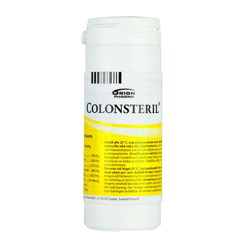 Colonsteril-jauhe oraaliliuosta varten (70 g) purkillinen liuotetaan puhtaaseen veteen tasan 1000 millilitraksi