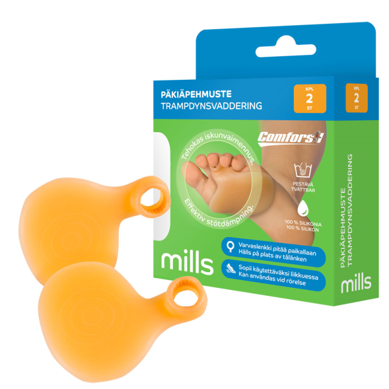 Päkiän alueen kivun lievitykseen. Vähentää painetta ja lievittää kipua päkiän alueella. Ehkäisee hiertymien ja kovettumien muodostumista. Silikoni suojaa ihoa asettuessaan suoraan päkiää vasten. Päkiäpehmuste pysyy hyvin paikoillaan varvaslenkin avulla. Kankaalla vahvistettu silikonilenkki kestää hyvin venytystä.