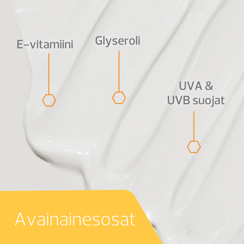Levitä ennen auringolle altistumista. Lisää usein ja runsaasti säilyttääksesi riittävän suojaustason, erityisesti hikoilun, uimisen ja pyyhekuivauksen jälkeen. Liian vähäinen määrä aurinkosuojavoidetta alentaa suojaustasoa.