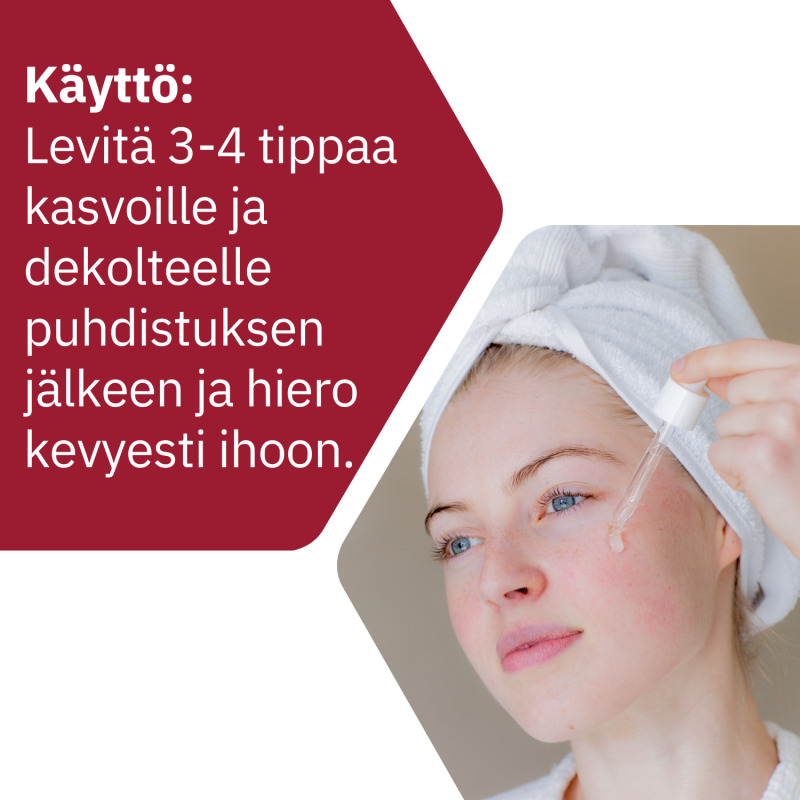 Levitä puhdistetulle iholle hierovin liikkein aamuin ja illoin ennen päivä- ja yövoidetta.