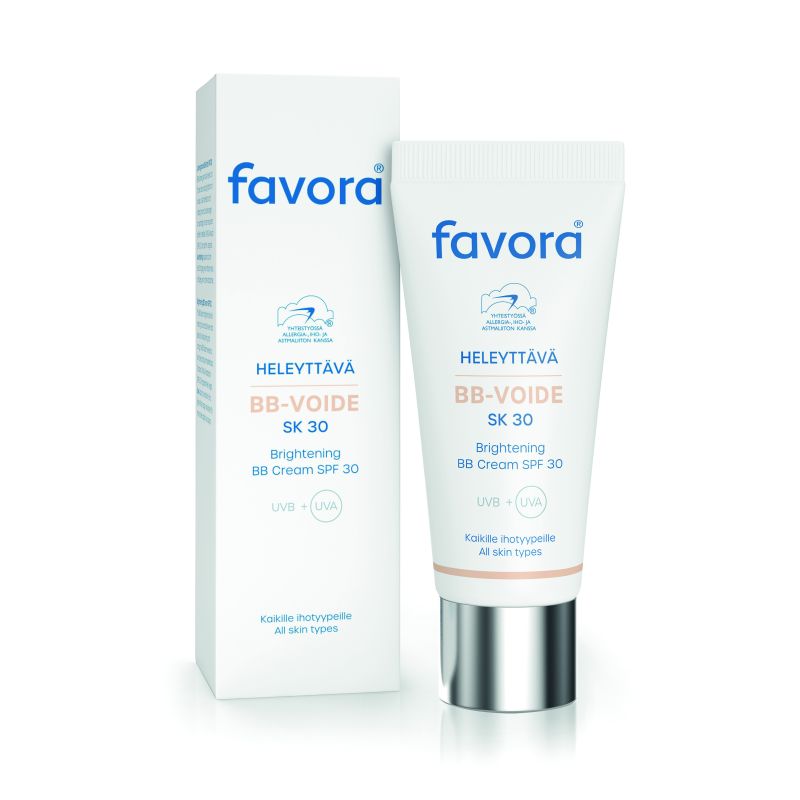 Heleyttävä BB-voide SK 30 tasoittaa ihon sävyä saaden sen näyttämään tasaisen kauniilta ja luonnolliselta. Voide sisältää tehokkasti kosteuttavia ainesosia mm. betaiinia sekä ihoa vahvistavaa ja hoitavaa E-vitamiinia. Korkean UVA- ja UVB -suojan SK 30 sisältämä voide suojaa ihoa auringon haitalliselta UV-säteilyltä. Voidetta on yksi universaali sävy, joka soveltuu useimmille ihonsävyille. Yksi kerros BB-voidetta antaa kevyemmän sävyn, kaksi kerrosta peittää hieman enemmän. Voide sopii käytettäväksi yksinään tai meikkivoiteen alla. Hajusteeton.