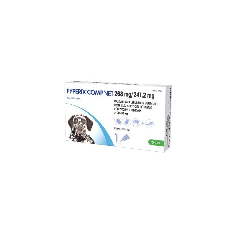 FYPERIX COMP VET paikallisvaleluliuos 268 mg/241,2 mg koiralle yli 20 kg-40 kg 2,68 ml