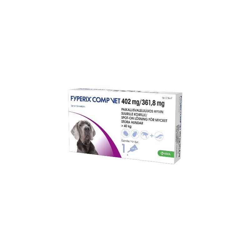 FYPERIX COMP VET paikallisvaleluliuos 402 mg/361,8 mg koiralle yli 40 kg-60 kg 4,02 ml