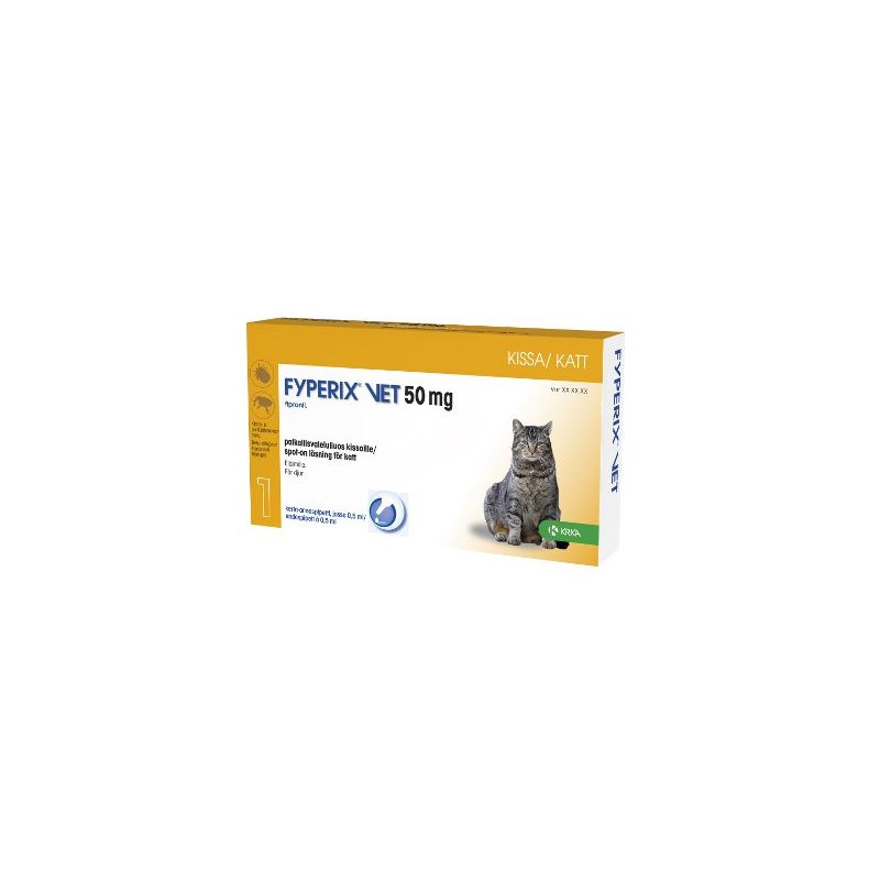 Fyperix vet 50 mg paikallisvaleluliuos on tarkoitettu kissan kirppu- ja puutiaistartuntojen hoitoon. Valmisteen vaikuttava aine on fiproniili.