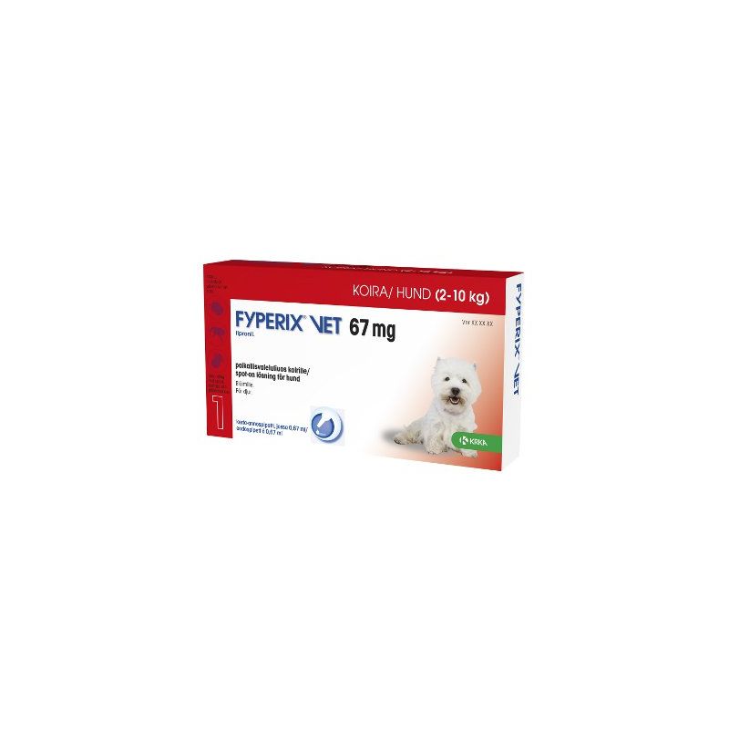 Fyperix vet 67/134/268/402 mg paikallisvaleluliuos on tarkoitettu koiran kirppu-, väive- ja puutiaistartuntojen hoitoon.