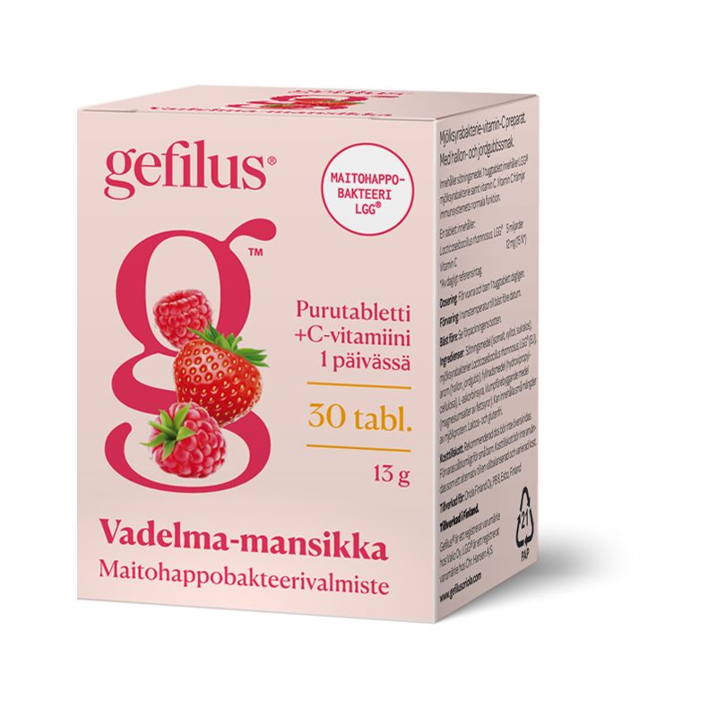 Gefilus Vadelma-mansikka purutabletti 30 kpl