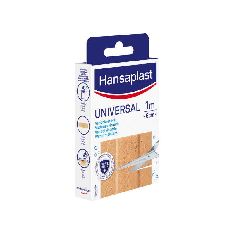Hansaplast Universal -laastarit sopivat peittämään ja suojaamaan kaikenlaisia pienempiä haavoja. Suojaa bakteereilta. Materiaali on hengittävä ja vettähylkivä. Tarttumaton haavatyyny suojaa ja tuntuu pehmeältä haavaa vasten. Vahva kiinnitys takaa laastarin pysymisen paikoillaan.