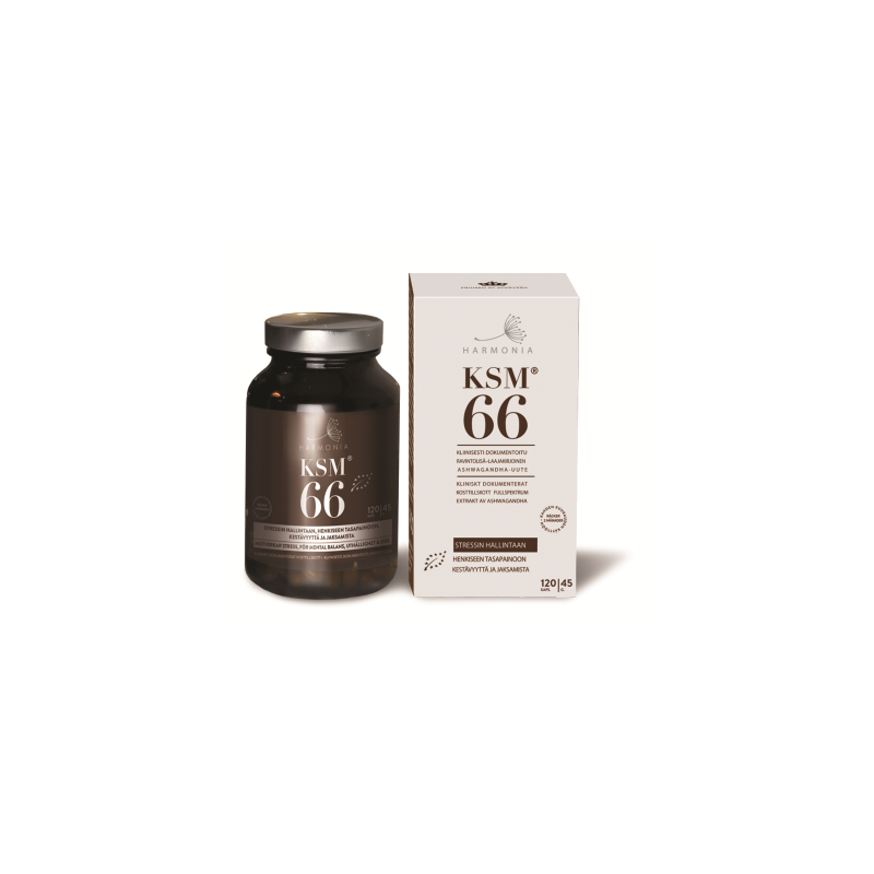 Harmonia KSM66® on ravintolisä, jonka sisältämä ashwagandha-uute auttaa ylläpitämään stressinsietokykyä, tukee nukahtamista sekä fyysistä ja henkistä vireyttä. Se auttaa edistämään toipumista stressaavista tilanteista. Auttaa ylläpitämään kestävyyttä ja energian tunnetta.