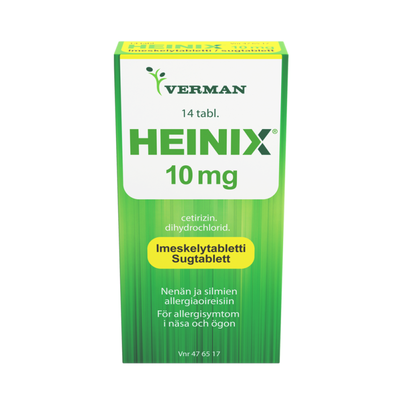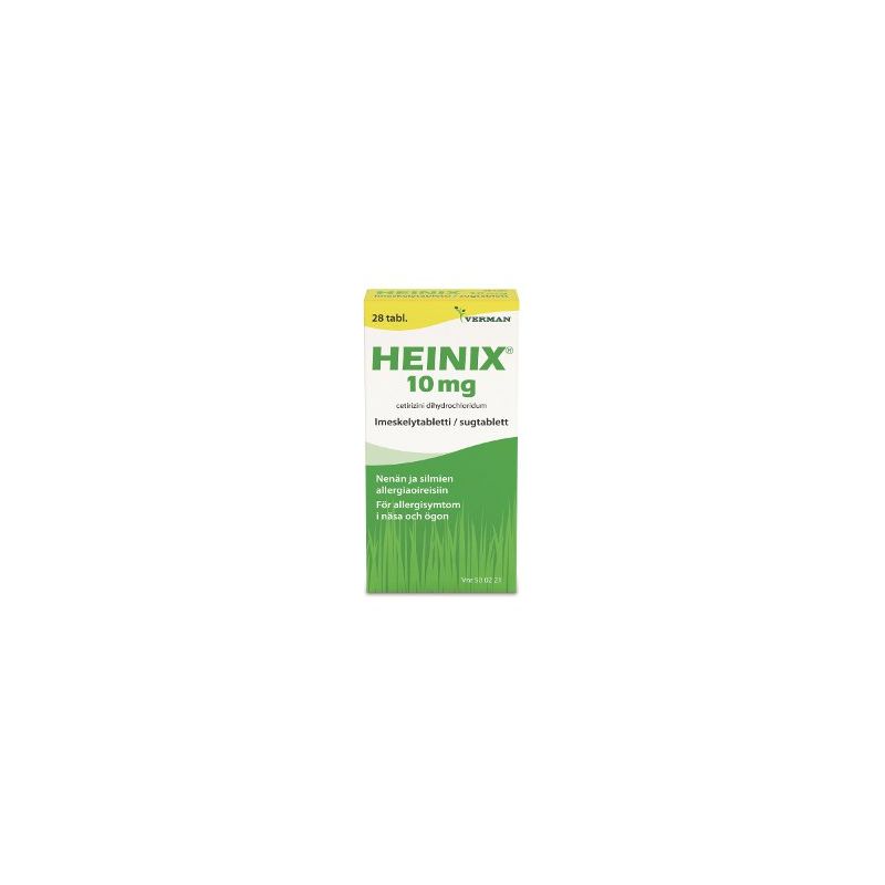 Heinix on allergialääke, jonka vaikuttava aine on setiritsiini. Se on tarkoitettu allergiseen nuhaan liittyvien nenä- ja silmäoireiden hoitoon sekä pitkäaikaisen nokkosihottuman hoitoon. Heinix imeskelytabletti ei sovellu alle 6-vuotiaille lapsille.