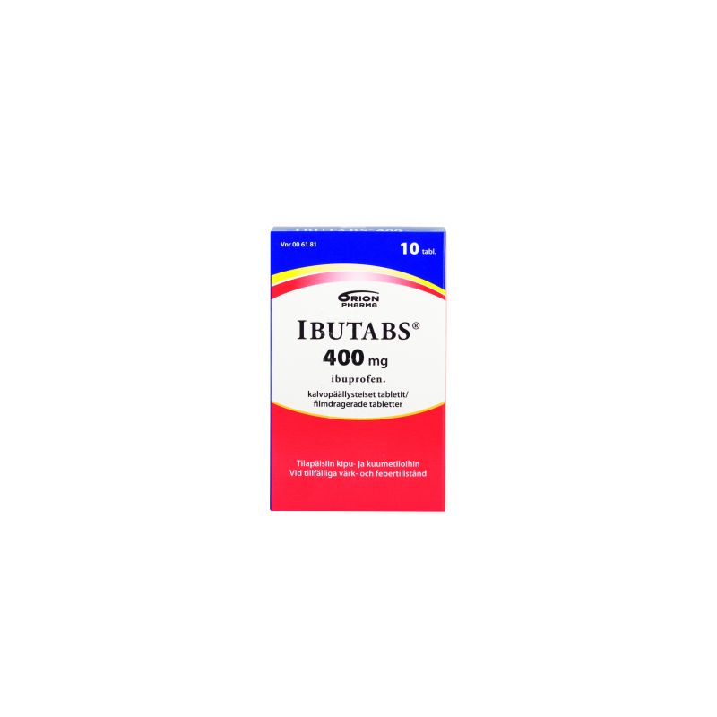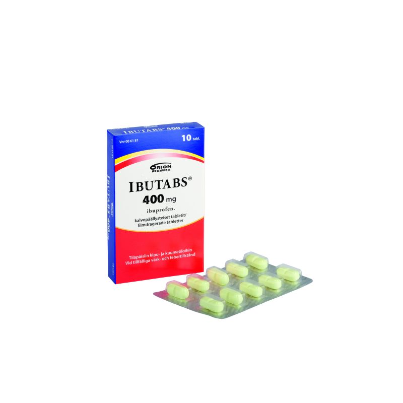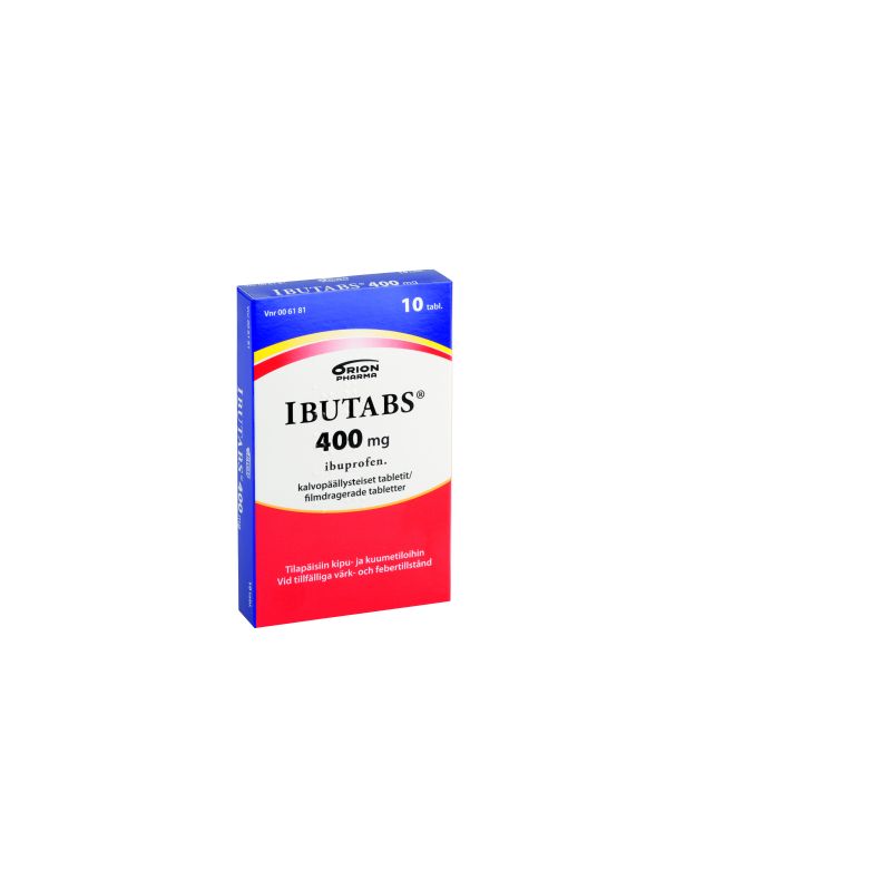 Ibutabs 400 mg tabletti tilapäisiin kuume-ja kiputiloihin aikuisille ja yli 20 kg painaville lapsille. Vaikuttava aine ibuprofeeni. Pitkäaikaiseen käyttöön vain lääkärin määräyksestä. Pakkauskoot 10 ja 30 tabl.
