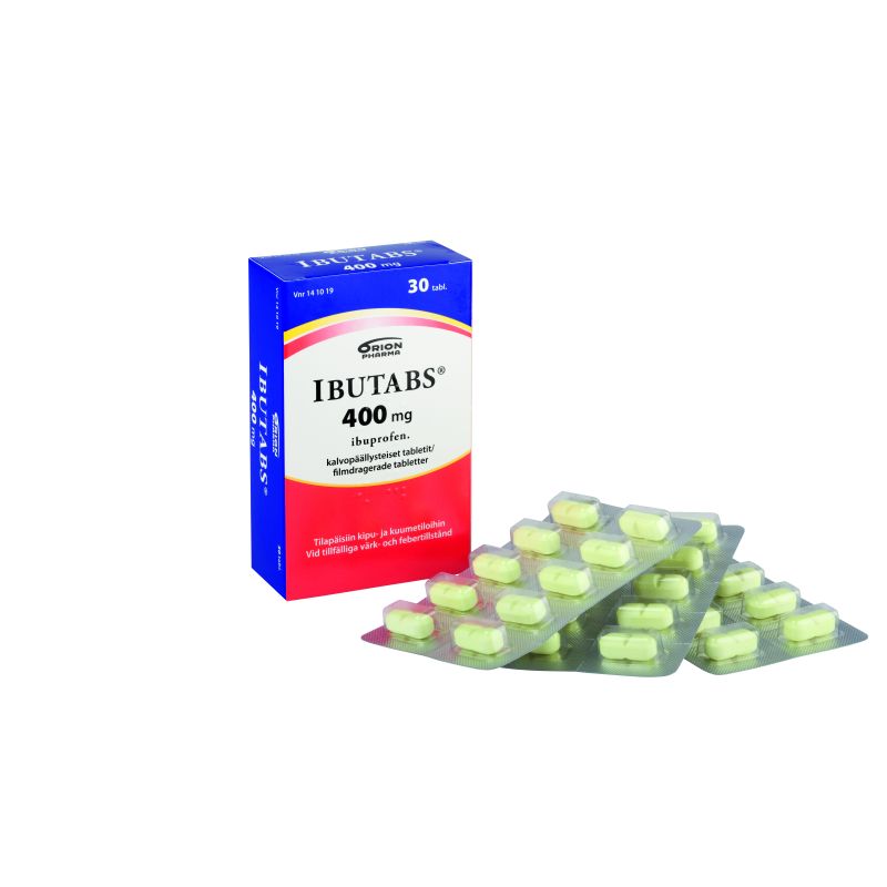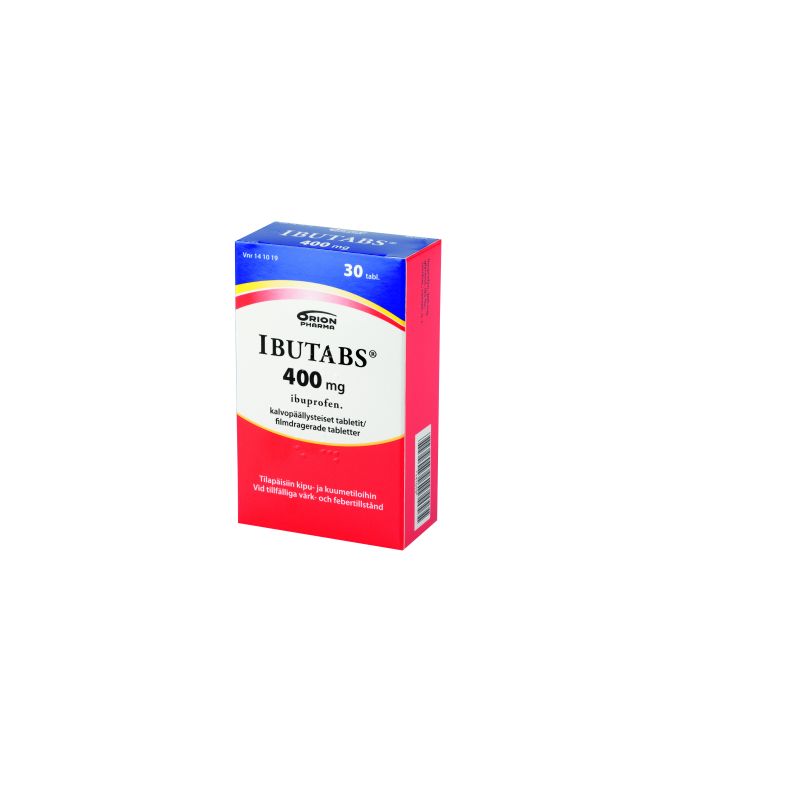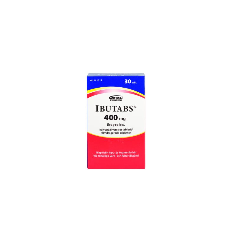 Ibutabs 400 mg tabletti tilapäisiin kuume-ja kiputiloihin aikuisille ja yli 20 kg painaville lapsille. Vaikuttava aine ibuprofeeni. Pitkäaikaiseen käyttöön vain lääkärin määräyksestä. Pakkauskoot 10 ja 30 tabl.