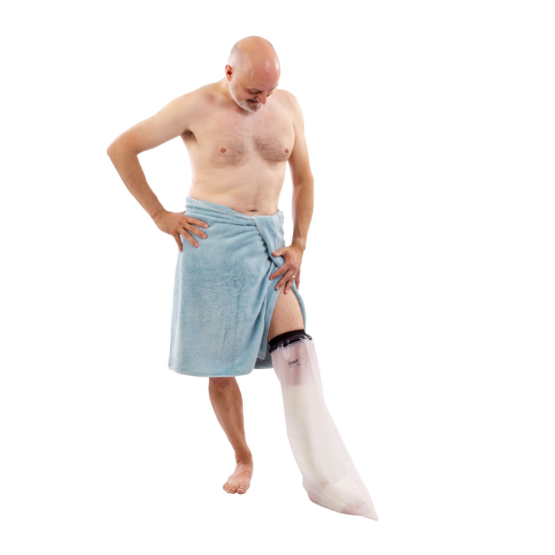 Vaivaton ja kestävä suihkusuoja suojaa haavasidoksia, kevennyksiä ja ja kipsiä vedeltä suihkun ja kylvyn aikana. Olkapää pituus.