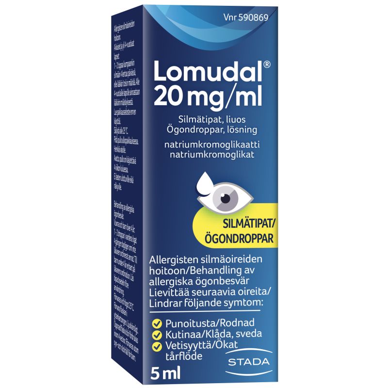 Lomudal-silmätipat vaikuttavat silmän sidekalvon allergisen tulehduksen eli konjunktiviitin aiheuttamiin silmäoireisiin kuten silmien kutinaan, punoitukseen ja vetisyyteen. Lomudal-silmätipat sisältävät natriumkromoglikaattia, joka estää histamiinin ja muiden tulehdusta aiheuttavien aineiden vapautumisen. Lomudalia voidaan käyttää ennaltaehkäisevästi, mutta myös oireiden jo ilmaannuttua. Lomudal-silmätipat on tarkoitettu aikuisille ja yli 4-vuotiaille lapsille. Lomudal-silmätippoja on saatavilla säilöntäaineettomissa kertakäyttöpipeteissä ja pullossa.