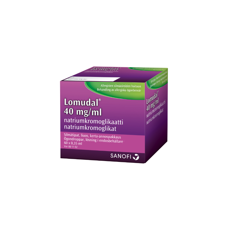 Lomudal-silmätipat vaikuttavat silmän sidekalvon allergisen tulehduksen eli konjunktiviitin aiheuttamiin silmäoireisiin kuten silmien kutinaan, punoitukseen ja vetisyyteen. Lomudal-silmätipat sisältävät natriumkromoglikaattia, joka estää histamiinin ja muiden tulehdusta aiheuttavien aineiden vapautumisen. Lomudalia voidaan käyttää ennaltaehkäisevästi, mutta myös oireiden jo ilmaannuttua. Lomudal-silmätipat on tarkoitettu aikuisille ja yli 4-vuotiaille lapsille. Lomudal-silmätippoja on saatavilla säilöntäaineettomissa kertakäyttöpipeteissä ja pullossa.