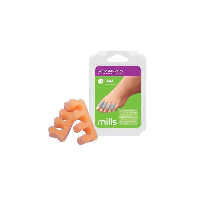 Varvaskampa suojaa varpaiden välistä ihoa ja tukee kevyesti varpaiden asentoa. Se suojaa myös varpaiden nivelpintoja, ehkäisee varvasvälihautumia ja erottaa varpaat toisistaan esim. hoitotoimenpiteiden aikana. Tuote kestää muutaman pesukerran. Valmistettu pehmeästä ja muotonsa säilyttävästä vaahtomuovista. CE-merkitty terveydenhuollon tarvike
