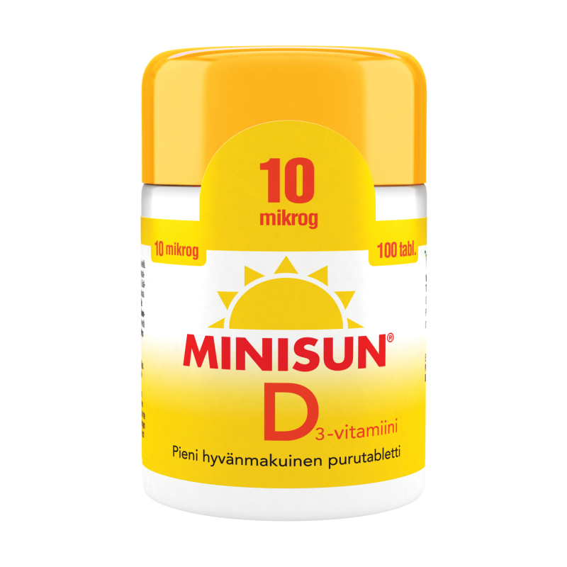 Suomessa kehitetyt Minisun D-vitamiinitabletit sopivat koko perheelle. Minisun 10 mikrog purutabletti sopii käytettäväksi ympäri vuoden.