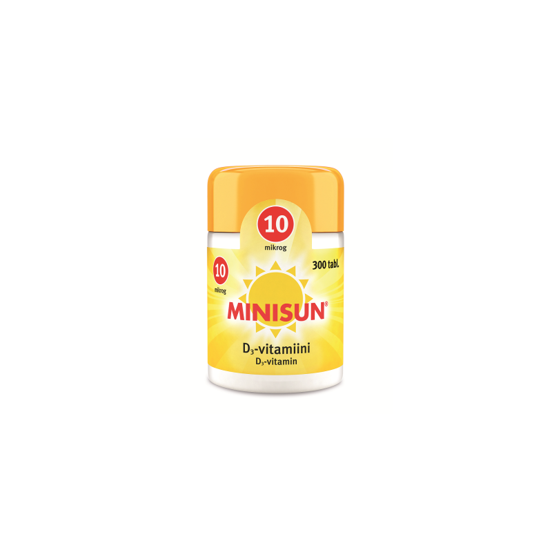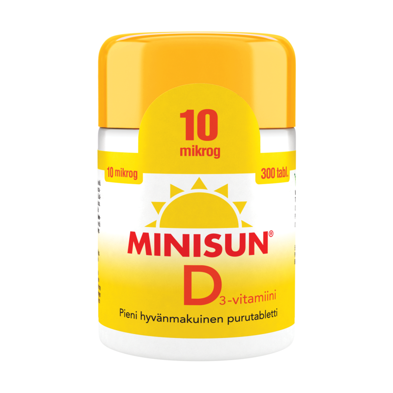 Suomessa kehitetyt Minisun D-vitamiinitabletit sopivat koko perheelle. Minisun 10 mikrog purutabletti sopii käytettäväksi ympäri vuoden.