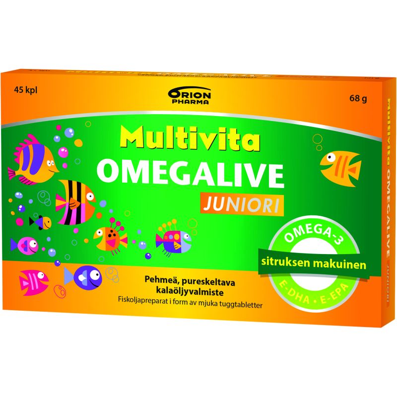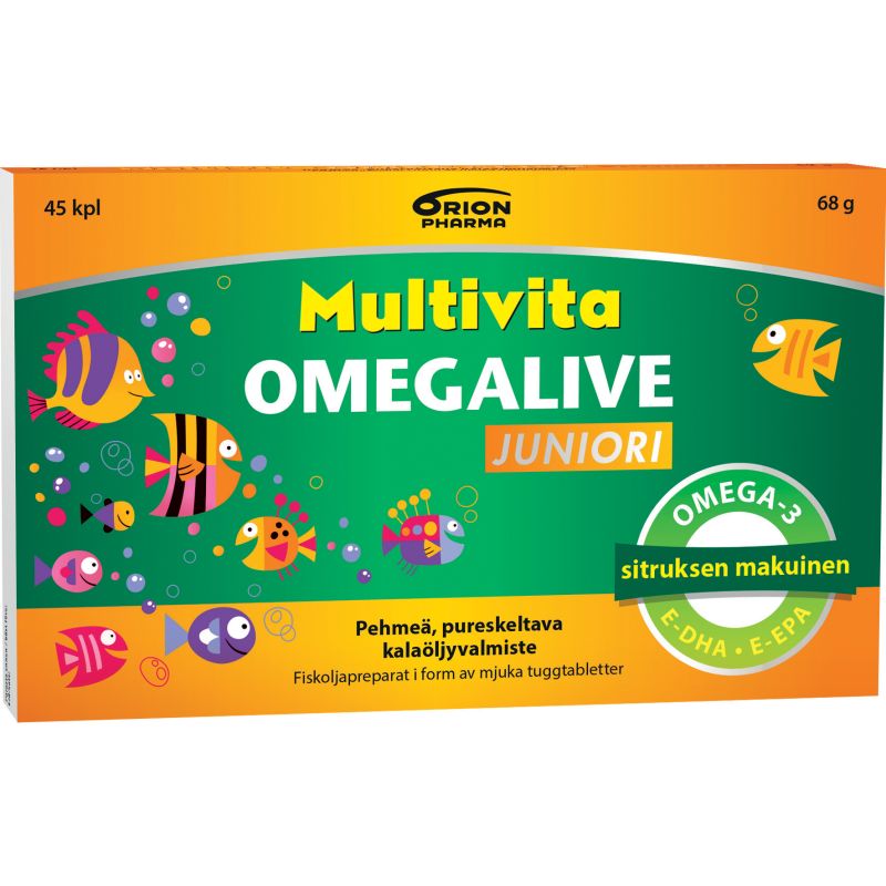 Hedelmäisen makuinen omega-3-kalaöljyvalmiste myös perheen pienimmille. Pehmeä, geelimäinen tabletti maistuu hedelmäisen raikkaasti appelsiinilta ja sitruunalta ja sisältää omega-3-rasvahappojen lisäksi myös vastustuskykyä vahvistavaa D3-vitamiinia. Sisältää vain luontaisia aromi- ja väriaineita.