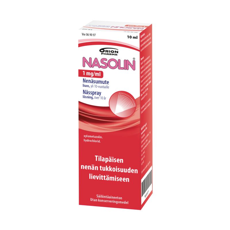 Nasolin on valmiste nuhaoireiden helpottamiseen flunssan aikana. Sen vaikuttava aine, ksylometatsoliini, vähentää nenän limakalvon turvotusta.