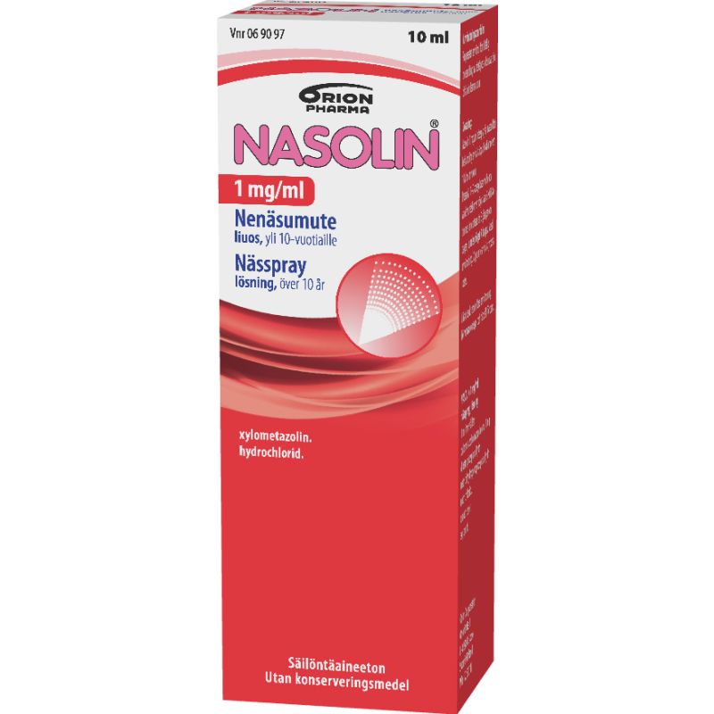 Nasolin on valmiste nuhaoireiden helpottamiseen flunssan aikana. Sen vaikuttava aine, ksylometatsoliini, vähentää nenän limakalvon turvotusta. Vaikutus alkaa nopeasti ja kestää 6–8 tuntia. Nasolin 0,5 mg/ml sumute soveltuu vain lyhytaikaiseen käyttöön 2-10 -vuotiaille lapsille. Sumutteet ovat säilöntäaineettomia.