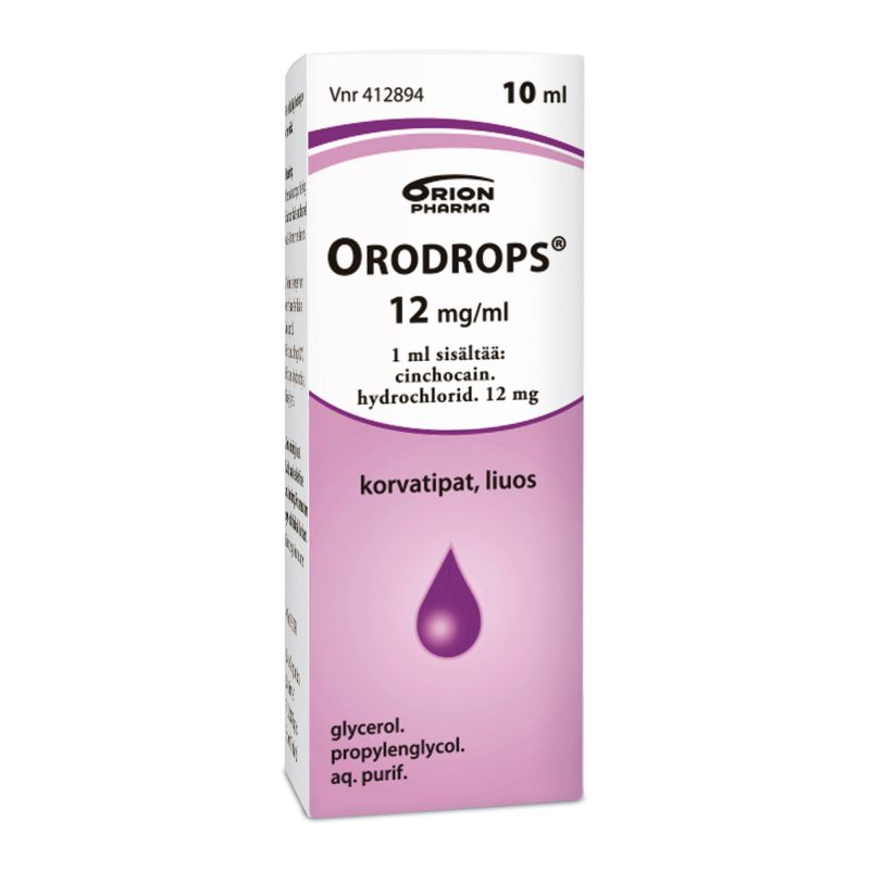 Orodrops-korvatippoja käytetään korvakivun tilapäiseen lievitykseen. Valmisteen vaikuttava aine on sinkokaiini. Se on paikallisesti käytettävä puudute, joka lievittää kipua. Pitkäaikaiseen käyttöön vain lääkärin ohjeen mukaan.