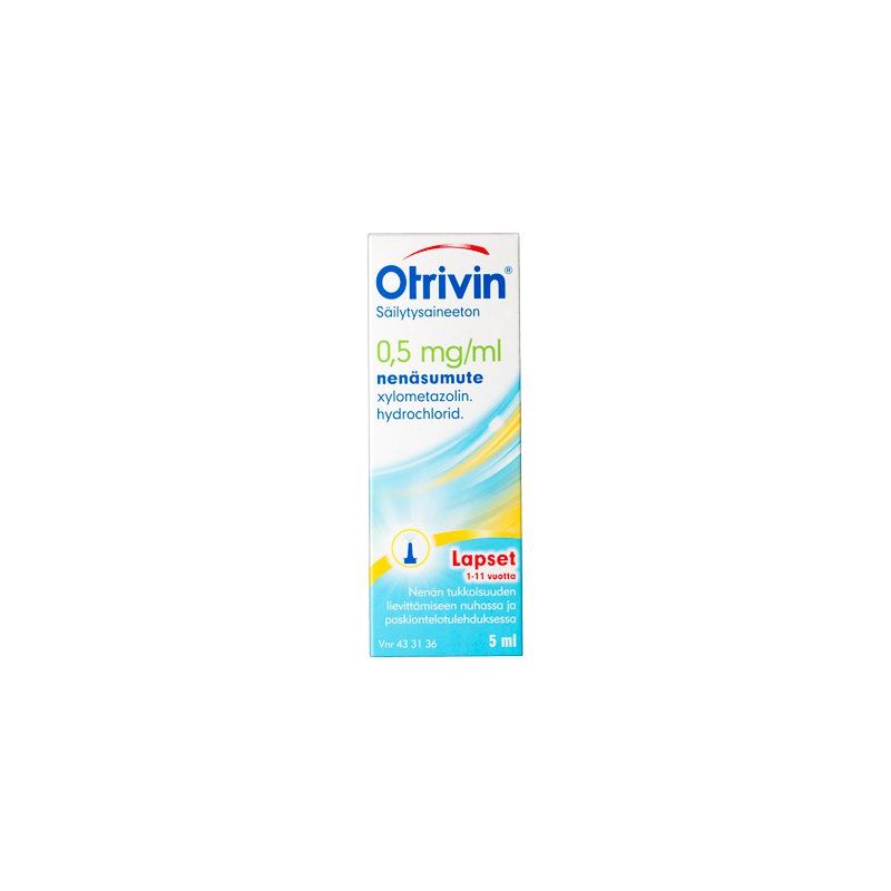 Otrivinia käytetään nenän tukkoisuuden lievittämiseen nuhan ja poskiontelotulehduksen aikana. Sen vaikuttava aine on ksylometatsoliini. Vaikutus alkaa nopeasti ja kestää noin 10 tuntia. Otrivin Säilytysaineeton 0,5 mg/ml -nenäsumute on tarkoitettu 1–11-vuotiaille lapsille, aikuisen valvonnassa. Alle 1-vuotiaille ja pitkäaikaiseen käyttöön vain lääkärin määräyksestä.