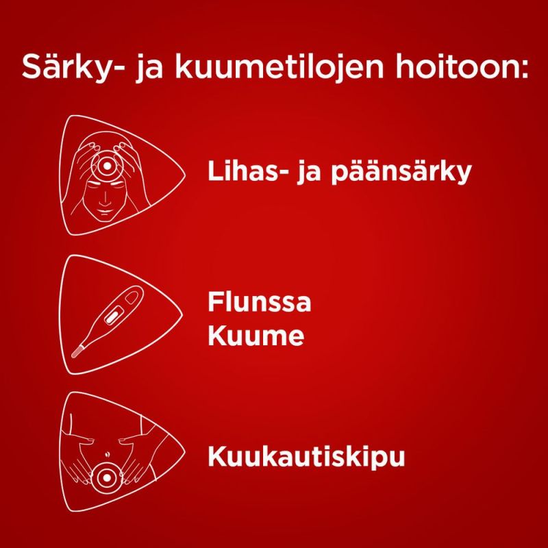 Sisältää parasetamolia. Ei saa käyttää samanaikaisesti muiden parasetamolia sisältävien valmisteiden kanssa, koska samanaikainen käyttö muiden parasetamolia sisältävien valmisteiden kanssa saattaa johtaa yliannostukseen. Parasetamolin yliannostus saattaa aiheuttaa maksavaurion, mikä voi johtaa maksansiirtoon tai kuolemaan