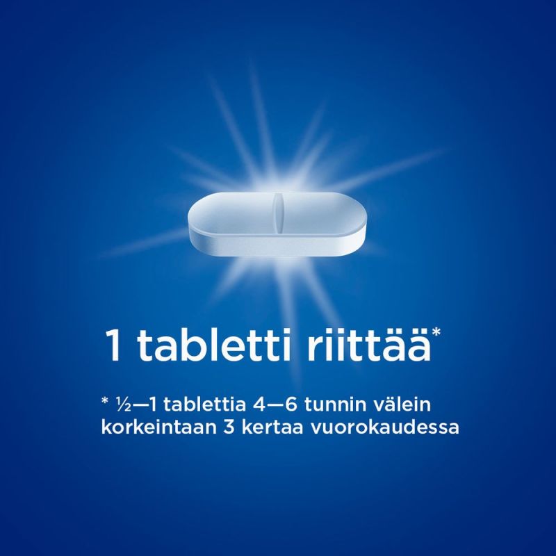 Annostus aikuisille: 1/2 - 1 tablettia 4 - 6 tunnin välein korkeintaan 3 kertaa vuorokaudessa. Suurin suositeltu vuorokausiannos: 3000 mg Tabletteja ei saa ottaa useammin kuin 4 tunnin välein