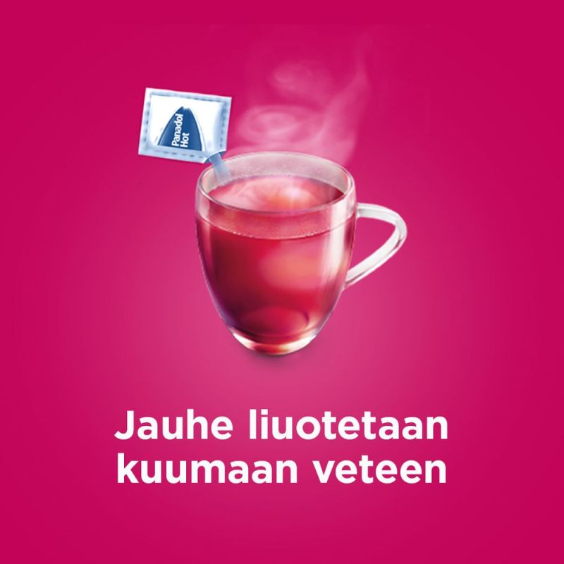 Panadol Hot -valmistetta käytetään vilustumissairauksien yhteydessä tilapäisten särky- ja kuumetilojen hoitoon, influenssaan, päänsäryn ja lihassäryn hoitoon.