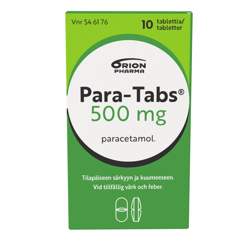Para-Tabs 500 mg on kipulääke, joka alentaa myös kuumetta. Vaikuttavana aineena on parasetamoli, joka ei ärsytä ruoansulatuskanavaa ohjeen mukaisessa käytössä. Parasetamolia käytetään mm. lihas-, hammas- ja päänsärkyyn, kuukautiskipujen hoitoon sekä kuumeen ja kivun hoitoon virusten aiheuttaman nuhakuumeen ja influenssan yhteydessä. Pitkäaikaiseen käyttöön ja alle 4-vuotiaille lapsille vain lääkärin määräyksestä.