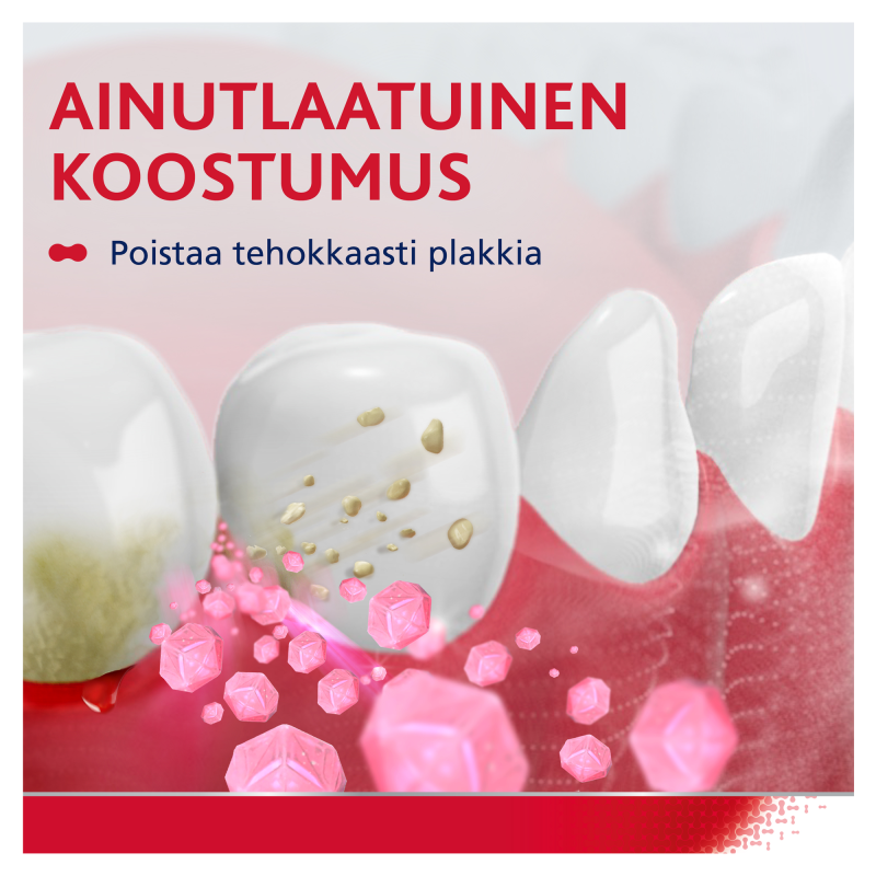 Harjaa hampaat kahdesti, korkeintaan kolmesti päivässä. Vältä tuotteen nielemistä ja sylje pois. Käänny hammaslääkärin puoleen, jos oireet jatkuvat tai pahenevat tai jos lapsen ikenet vuotavat verta.