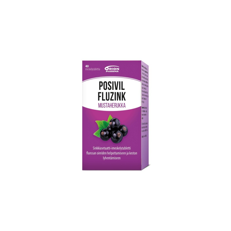 Posivil FluZink sitruuna-lakritsi, anis, veriappelsiini ja mustaherukka -imeskelytabletit ovat imeskeltäviä sinkkiasetaattitabletteja. Ne sopivat flunssan ensioireiden hoitoon ja ohjeen mukaan käytettyinä lyhentävät flunssaoireiden kestoa.