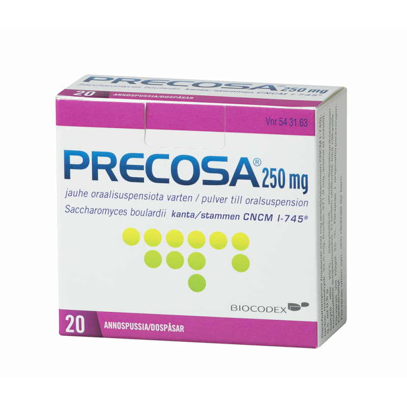 - Precosa ennaltaehkäisee ja hoitaa antibioottien aiheuttamaa ripulia sekä