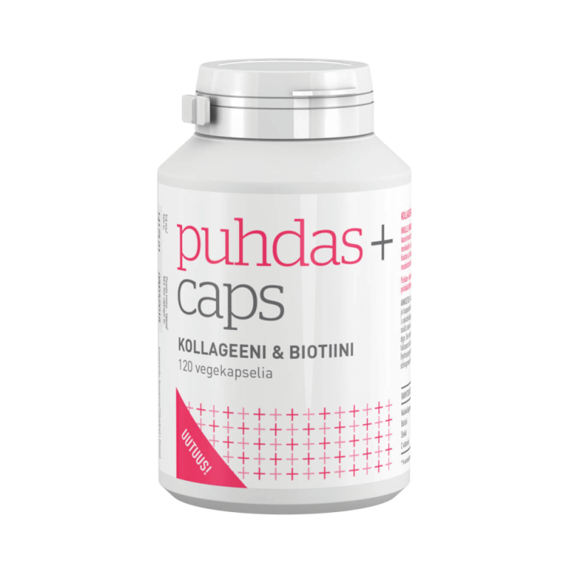 Puhdas+ Kollageeni & Biotiini sisältää kalakollageenia, joka on kalasta eristetty proteiini. Kollageeni muodostaa 30 % ihmisen elimistön proteiinista ja sitä löytyy erityisesti ihosta. Noin 25 vuoden iässä elimistö alkaa menettää kykynsä tuottaa uutta kollageenia.
