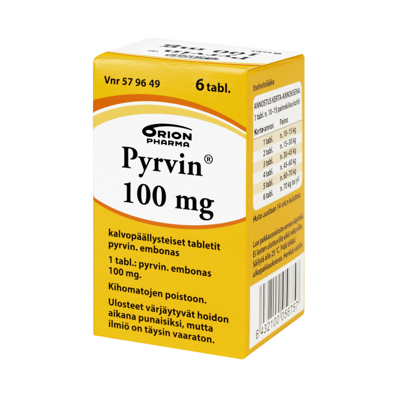 Pyrvin-tabletit otetaan kerta-annoksena, mutta hoito suositellaan uusittavaksi kahden vikon kuluttua