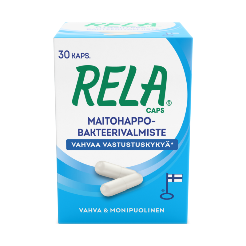 Rela Caps on monipuolinen yhdistelmä korkealaatuisia maitohappobakteereita ja *C-vitamiinia, joka edistää immuunijärjestelmän normaalia toimintaa. Päiväannos (1 kapseli) sisältää 1,5 miljardia Lactobacillus rhamnosus SP1 ja 1,5 miljardia Bifidobacterium lactis BLC -maitohappobakteereita ja 20mg C-vitamiinia (25% päivittäisen saannin vertailuarvosta). Helposti nieltävä Rela Caps sopii käytettäväksi päivittäin tai kuuriluontoisesti. Kapselin voi halutessaan avata.