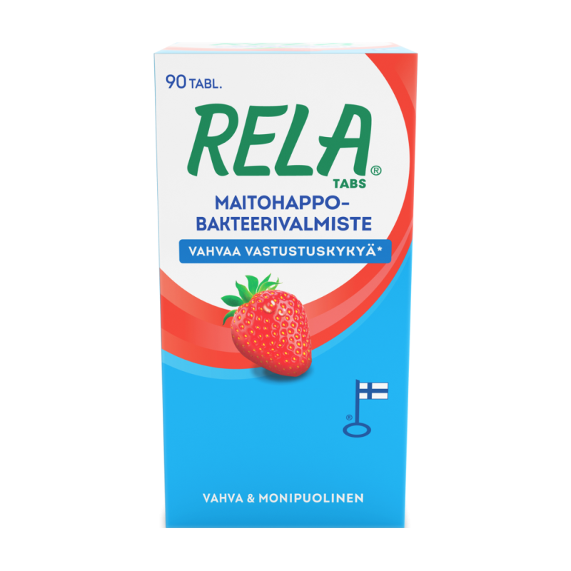 Uudistuneet Rela-maitohappobakteerivalmisteet sisältävät kahta tutkittua ja korkealaatuista bakteerikantaa (Lactobacillus rhamnosus SP1 ja Bifidobacterium lactis BLC1) ja 3 miljardia bakteeria päiväannosta kohden. Vahvaa vastustuskykyä** – Rela Tabs -tuotteet sisältävät maitohappobakteerien lisäksi C-vitamiinia, joka on tärkeä vastustuskyvyn ylläpitäjä. Hyvänmakuinen Rela Tabs Mansikka maistuu raikkaalle mansikalle, ei sisällä sukraloosia ja sopii koko perheelle. Uudistuneet Rela-tuotteet on valmistettu Suomessa ja niillä on avainlippumerkki.
