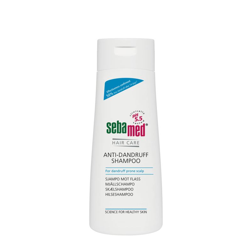 Sebamed Anti-Dandruff Shampoo on rasvoittuvan ja hilseilevän päänahan shampoo. Se lievittää tehokkaasti päänahan kutinaa sekä auttaa päänahan ihoa palautumaan tasapainoon. Hellävarainen OctopiroxR-ainesosa ehkäisee hilseen muodostumista sekä irrottaa ja poistaa sitä tehokkaasti. Sebamed Anti-Dandruff Shampoo tekee hiuksista kiiltävät ja hyväntuoksuiset.