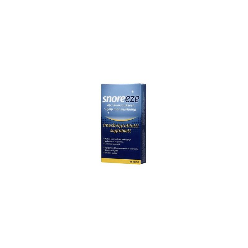Snoreezen mintun makuiset imeskelytabletit kiinteyttävät ja kostuttavat nielun takaosan pehmytkudoksia vähentäen näin kuorsausta.