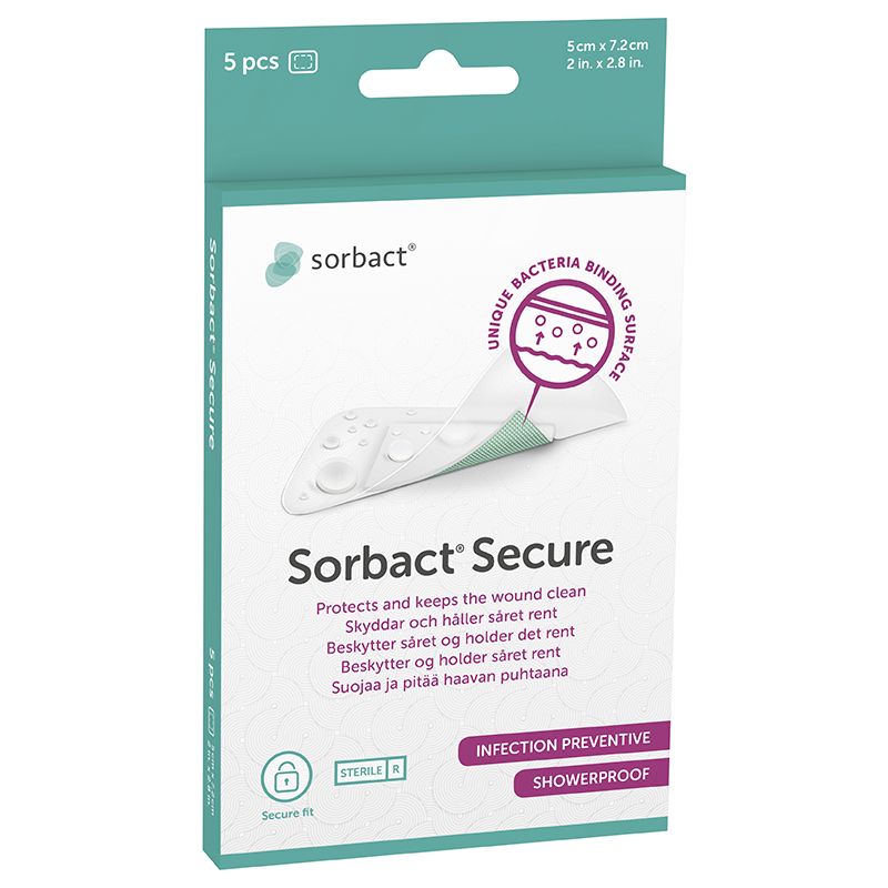 Sorbact Secure- laastarin ainutlaatuinen hydrofobinen pinta sitoo haitallisia bakteereita, estää haavan tulehtumista ja edesauttaa haavan paranemista. Sopii kaikenlaisten pienten haavojen hoitoon. Laastari on suihkun- jopa uimisen kestävä.